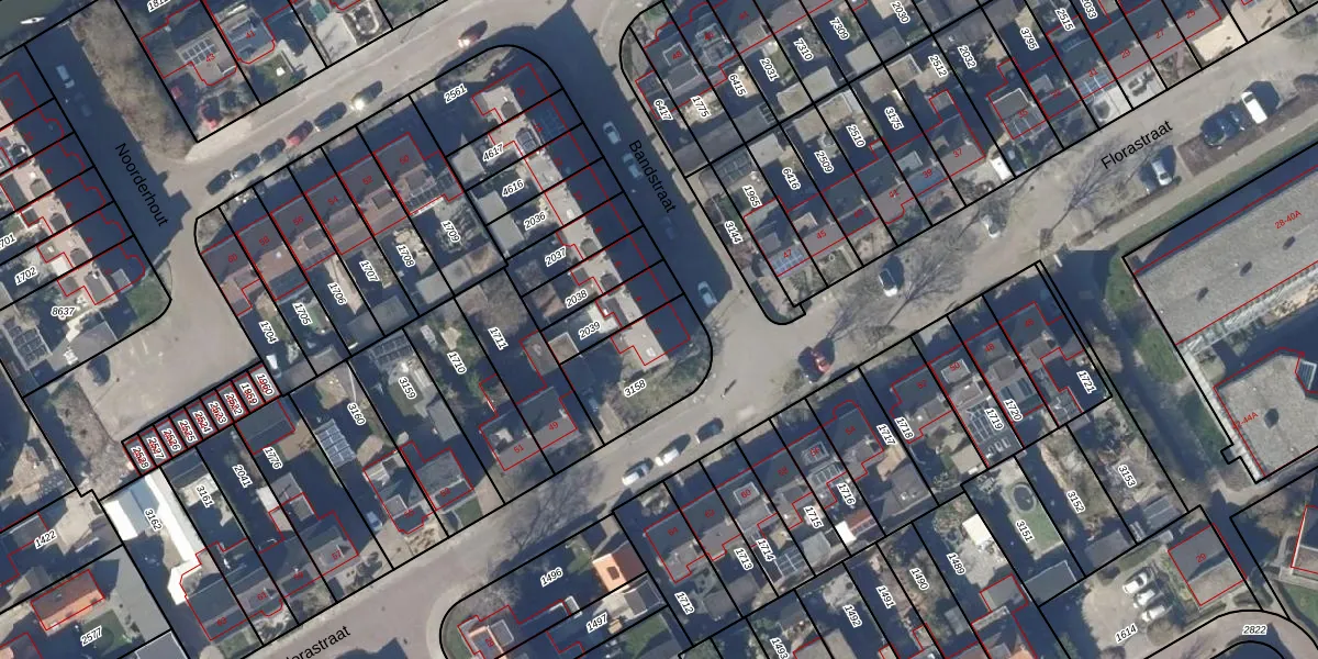 Gebruik de zoekbalk of klik op een perceel voor informatie over de adressen binnen dit perceel.