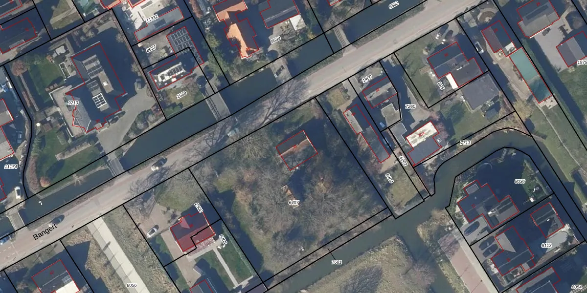Het perceel waarop Bangert 36 staat heeft een oppervlakte van 2255 m². Dit is een zeer groot perceel. De perceeloppervlakte wordt geregistreerd door het Kadaster. Gedetailleerde informatie over de maten van dit perceel kunt u vinden in het rapport Kadastrale kaart met maatvoering van Bangert 36.