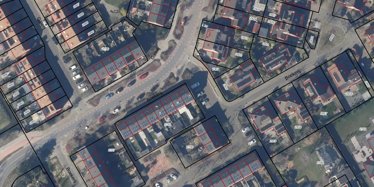 Het perceel waarop Boekerij 45 staat heeft een oppervlakte van 958 m². Dit is een groot perceel. De perceeloppervlakte wordt geregistreerd door het Kadaster. Gedetailleerde informatie over de maten van dit perceel kunt u vinden in het rapport Kadastrale kaart met maatvoering van Boekerij 45.