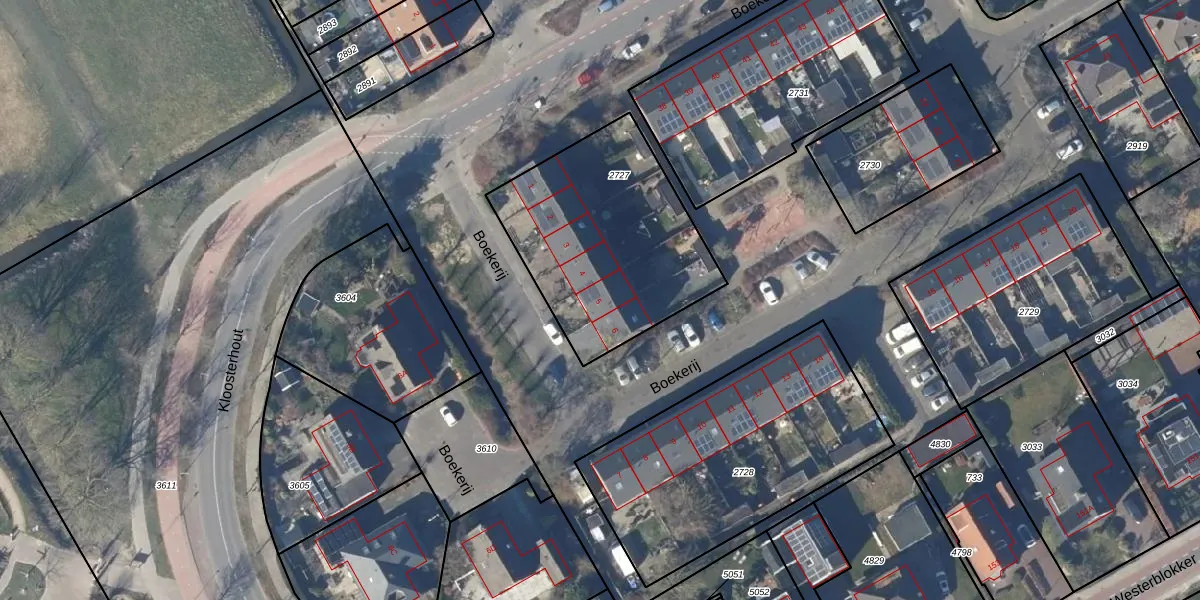 Het perceel waarop Boekerij 5 staat heeft een oppervlakte van 912 m². Dit is een groot perceel. De perceeloppervlakte wordt geregistreerd door het Kadaster. Gedetailleerde informatie over de maten van dit perceel kunt u vinden in het rapport Kadastrale kaart met maatvoering van Boekerij 5.