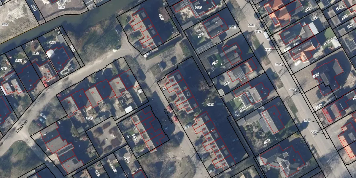 Het perceel waarop Coxlaan 68 staat heeft een oppervlakte van 1595 m². Dit is een zeer groot perceel. De perceeloppervlakte wordt geregistreerd door het Kadaster. Gedetailleerde informatie over de maten van dit perceel kunt u vinden in het rapport Kadastrale kaart met maatvoering van Coxlaan 68.