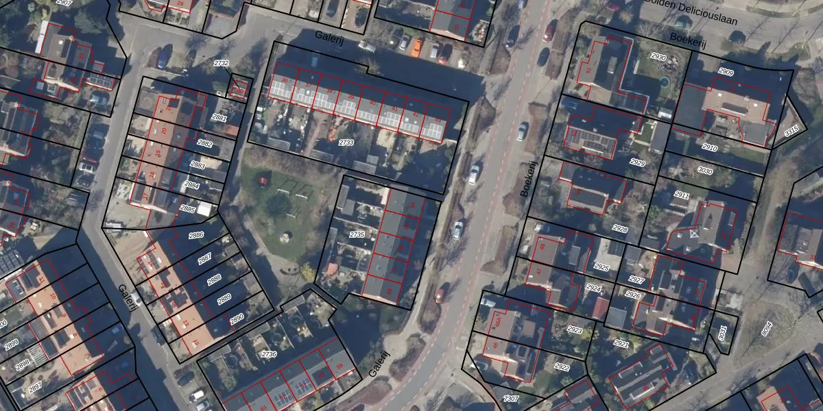 Het perceel waarop Galerij 54 staat heeft een oppervlakte van 688 m². Dit is een groot perceel. De perceeloppervlakte wordt geregistreerd door het Kadaster. Gedetailleerde informatie over de maten van dit perceel kunt u vinden in het rapport Kadastrale kaart met maatvoering van Galerij 54.