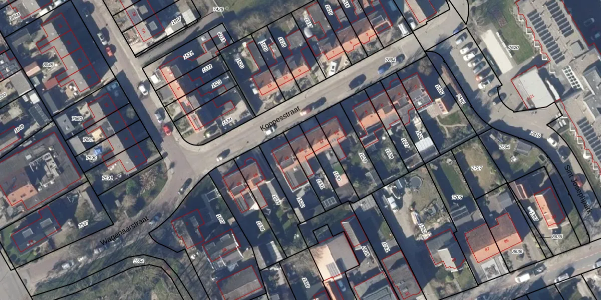Gebruik de zoekbalk of klik op een perceel voor informatie over de adressen binnen dit perceel.