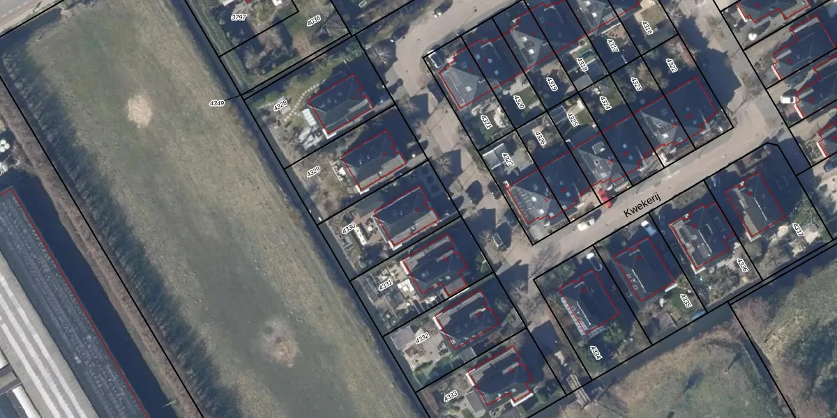 Het perceel waarop Kwekerij 9 staat heeft een oppervlakte van 478 m². Dit is een groot perceel. De perceeloppervlakte wordt geregistreerd door het Kadaster. Gedetailleerde informatie over de maten van dit perceel kunt u vinden in het rapport Kadastrale kaart met maatvoering van Kwekerij 9.