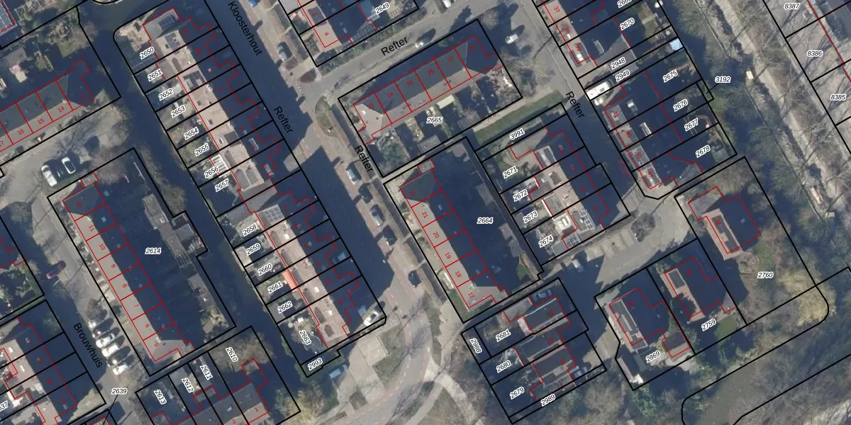 Refter 21 is gelegen op kadastraal perceel HOO00K2664. Deze kadastrale aanduiding is uniek en wordt gebruikt door het Kadaster om eigendomsrechten en andere zakelijke rechten vast te leggen. Het perceel maakt onderdeel uit van de kadastrale gemeente Hoorn.