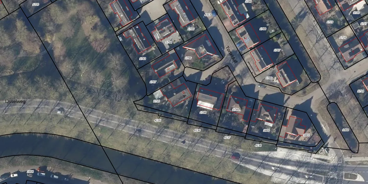 Gebruik de zoekbalk of klik op een perceel voor informatie over de adressen binnen dit perceel.