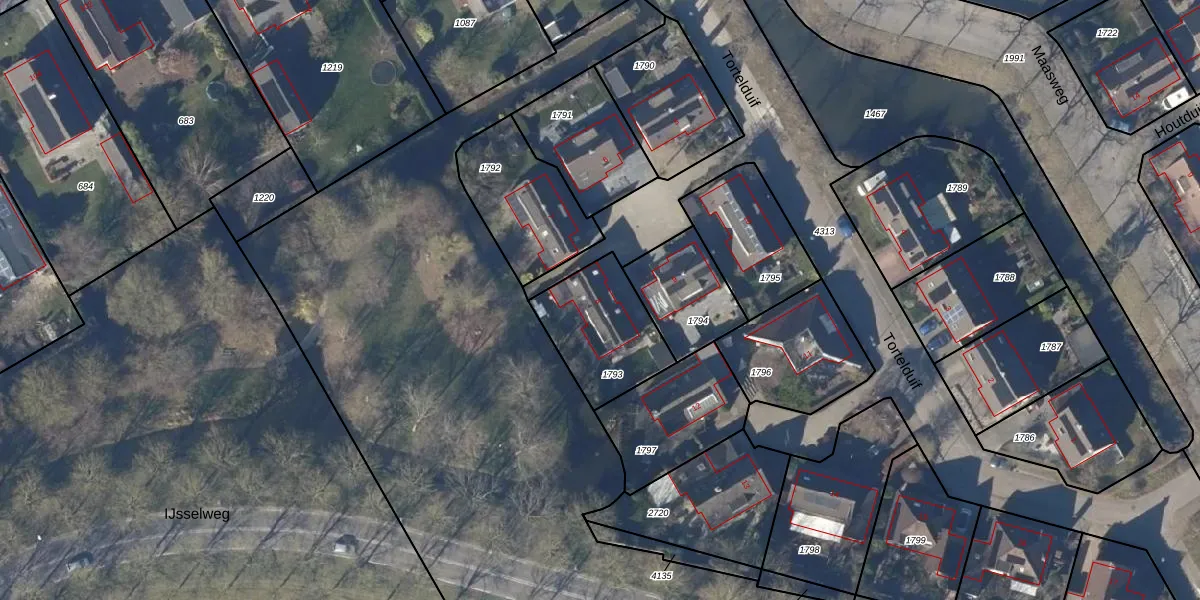 Het perceel waarop Tortelduif 8 staat heeft een oppervlakte van 346 m². Dit is een groot perceel. De perceeloppervlakte wordt geregistreerd door het Kadaster. Gedetailleerde informatie over de maten van dit perceel kunt u vinden in het rapport Kadastrale kaart met maatvoering van Tortelduif 8.
