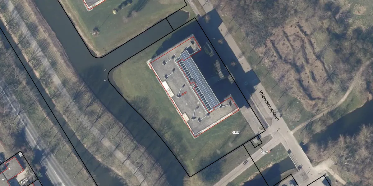 Het perceel waarop Vriendschaplaan 50 staat heeft een oppervlakte van 3704 m². Dit is een zeer groot perceel. De perceeloppervlakte wordt geregistreerd door het Kadaster. Gedetailleerde informatie over de maten van dit perceel kunt u vinden in het rapport Kadastrale kaart met maatvoering van Vriendschaplaan 50.