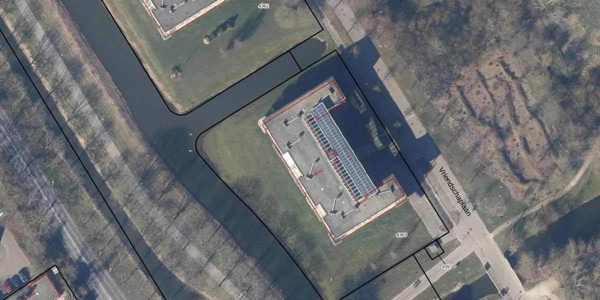 Het perceel waarop Vriendschaplaan 56 staat heeft een oppervlakte van 3704 m². Dit is een zeer groot perceel. De perceeloppervlakte wordt geregistreerd door het Kadaster. Gedetailleerde informatie over de maten van dit perceel kunt u vinden in het rapport Kadastrale kaart met maatvoering van Vriendschaplaan 56.