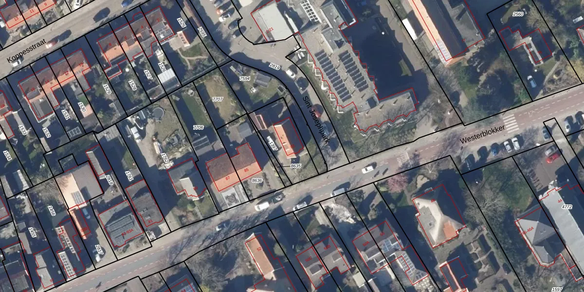 Gebruik de zoekbalk of klik op een perceel voor informatie over de adressen binnen dit perceel.