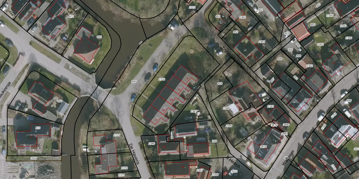 Het perceel waarop De Havens 11 staat heeft een oppervlakte van 1275 m². Dit is een zeer groot perceel. De perceeloppervlakte wordt geregistreerd door het Kadaster. Gedetailleerde informatie over de maten van dit perceel kunt u vinden in het rapport Kadastrale kaart met maatvoering van De Havens 11.