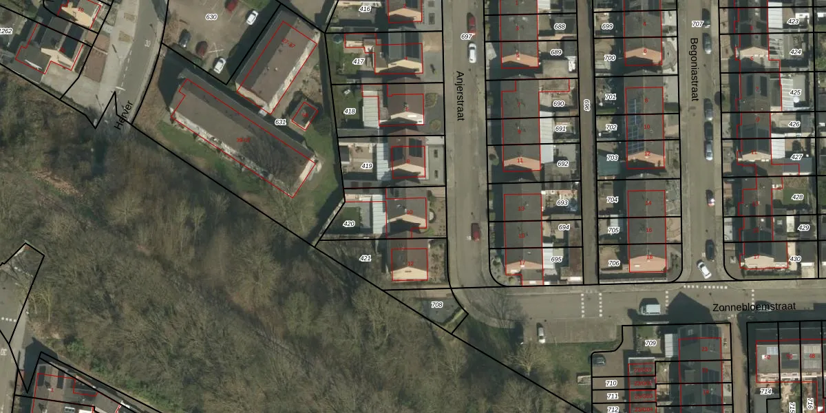 Anjerstraat 10 is gelegen op kadastraal perceel SPV00G420. Deze kadastrale aanduiding is uniek en wordt gebruikt door het Kadaster om eigendomsrechten en andere zakelijke rechten vast te leggen. Het perceel maakt onderdeel uit van de kadastrale gemeente Simpelveld.