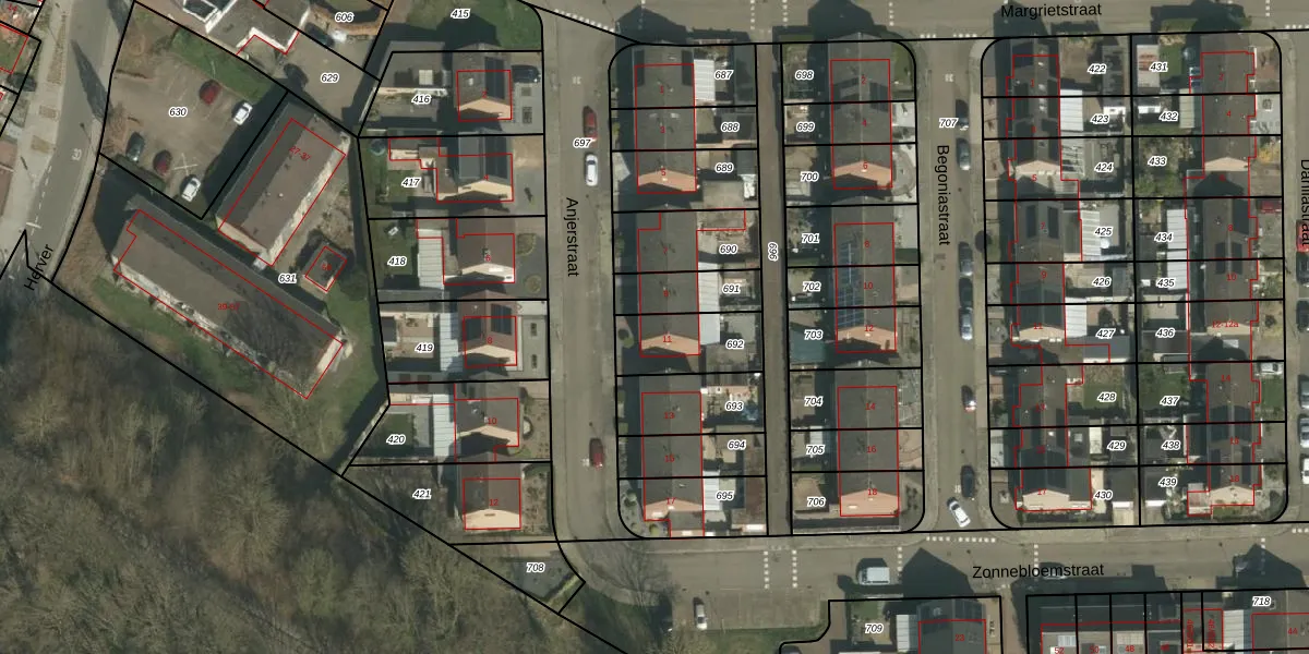 Anjerstraat 11 is gelegen op kadastraal perceel SPV00G692. Deze kadastrale aanduiding is uniek en wordt gebruikt door het Kadaster om eigendomsrechten en andere zakelijke rechten vast te leggen. Het perceel maakt onderdeel uit van de kadastrale gemeente Simpelveld.