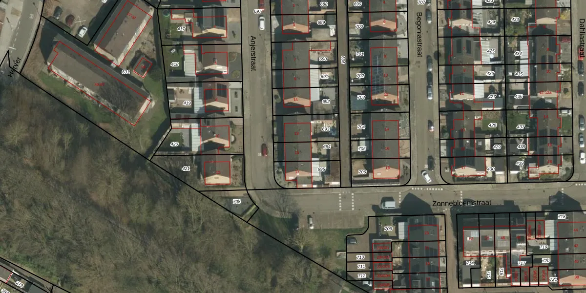 Anjerstraat 15 is gelegen op kadastraal perceel SPV00G694. Deze kadastrale aanduiding is uniek en wordt gebruikt door het Kadaster om eigendomsrechten en andere zakelijke rechten vast te leggen. Het perceel maakt onderdeel uit van de kadastrale gemeente Simpelveld.