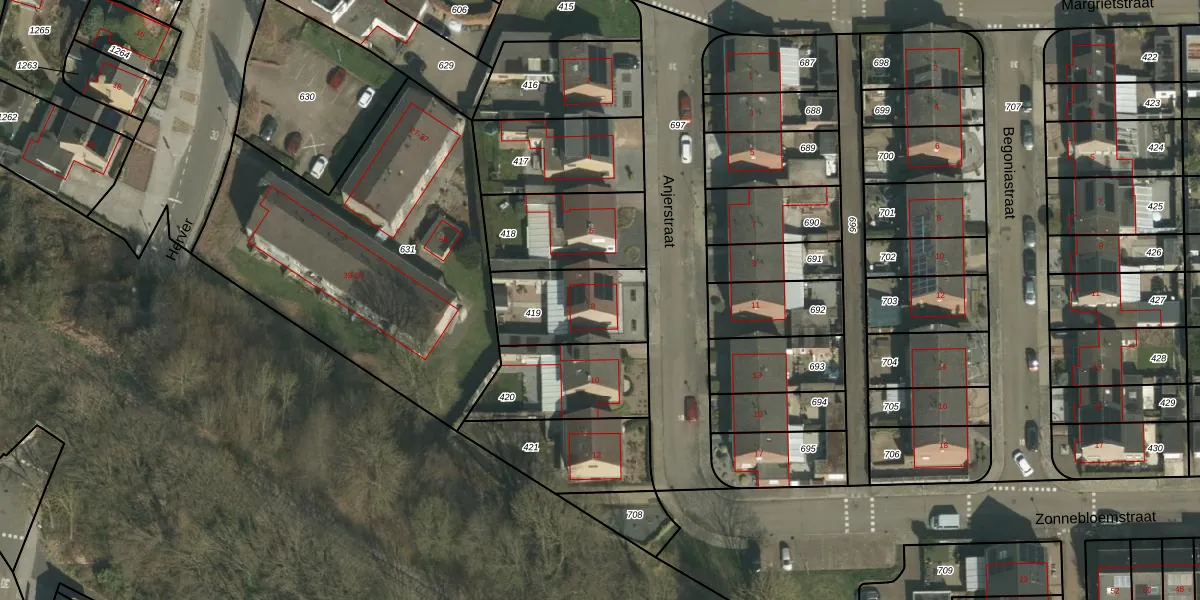 Anjerstraat 8 is gelegen op kadastraal perceel SPV00G419. Deze kadastrale aanduiding is uniek en wordt gebruikt door het Kadaster om eigendomsrechten en andere zakelijke rechten vast te leggen. Het perceel maakt onderdeel uit van de kadastrale gemeente Simpelveld.
