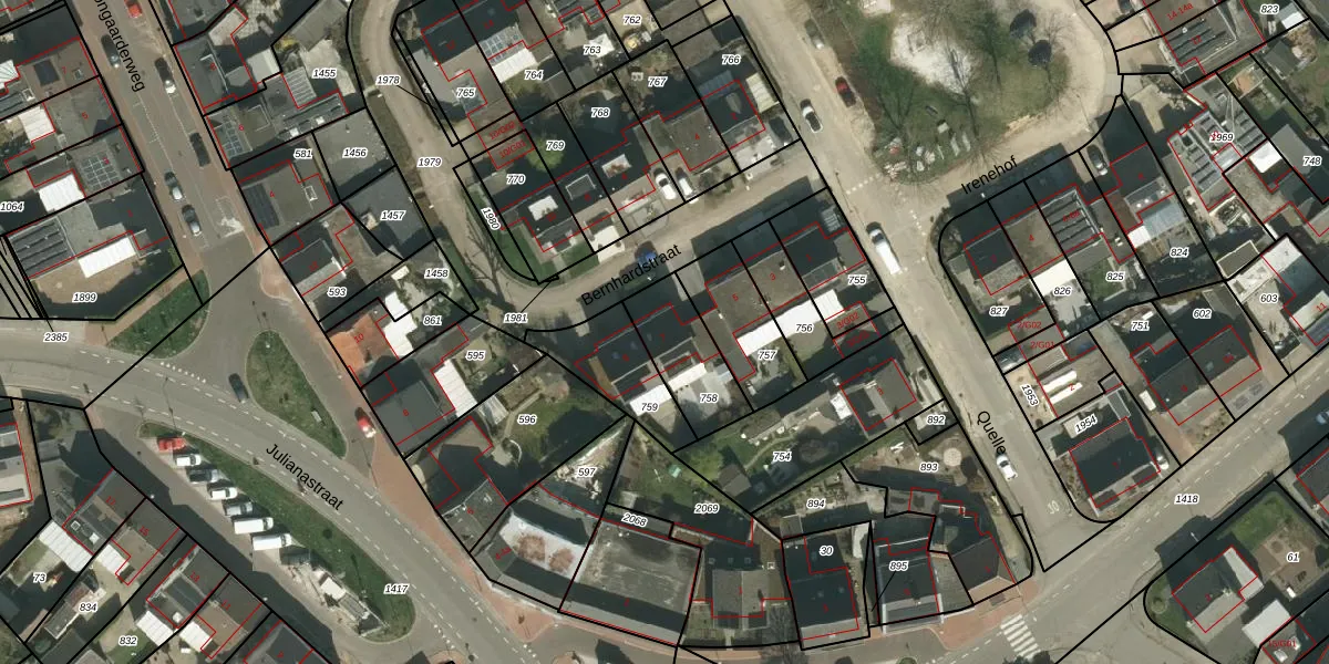 Bernhardstraat 7 is gelegen op kadastraal perceel SPV00G758. Deze kadastrale aanduiding is uniek en wordt gebruikt door het Kadaster om eigendomsrechten en andere zakelijke rechten vast te leggen. Het perceel maakt onderdeel uit van de kadastrale gemeente Simpelveld.