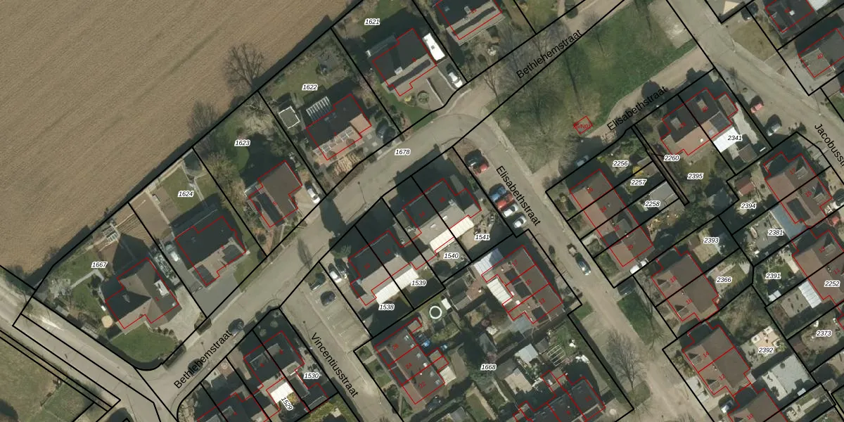Bethlehemstraat 14 is gelegen op kadastraal perceel SPV00G1540. Deze kadastrale aanduiding is uniek en wordt gebruikt door het Kadaster om eigendomsrechten en andere zakelijke rechten vast te leggen. Het perceel maakt onderdeel uit van de kadastrale gemeente Simpelveld.