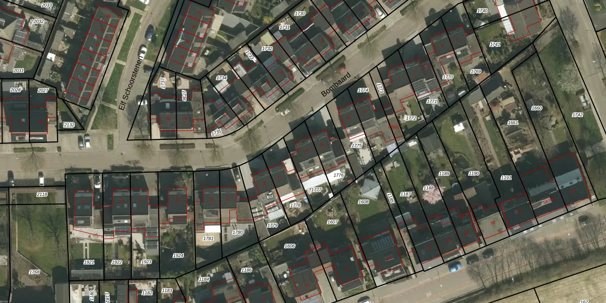 Het perceel waarop Bombaard 15 staat heeft een oppervlakte van 225 m². Dit is een middelgroot perceel. De perceeloppervlakte wordt geregistreerd door het Kadaster. Gedetailleerde informatie over de maten van dit perceel kunt u vinden in het rapport Kadastrale kaart met maatvoering van Bombaard 15.