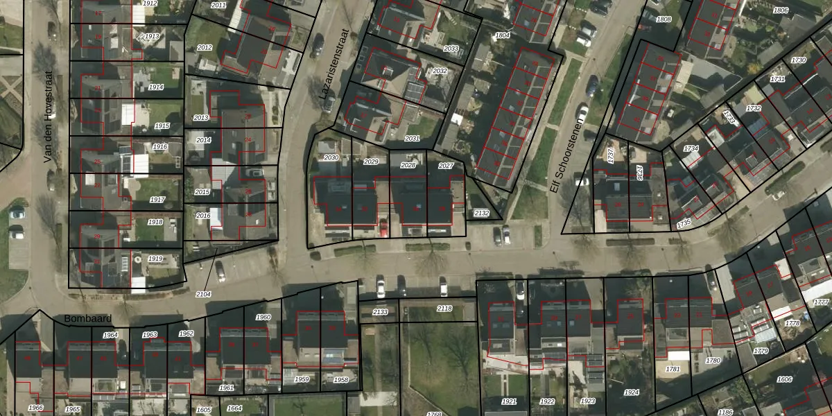 Het perceel waarop Bombaard 30 staat heeft een oppervlakte van 191 m². Dit is een middelgroot perceel. De perceeloppervlakte wordt geregistreerd door het Kadaster. Gedetailleerde informatie over de maten van dit perceel kunt u vinden in het rapport Kadastrale kaart met maatvoering van Bombaard 30.