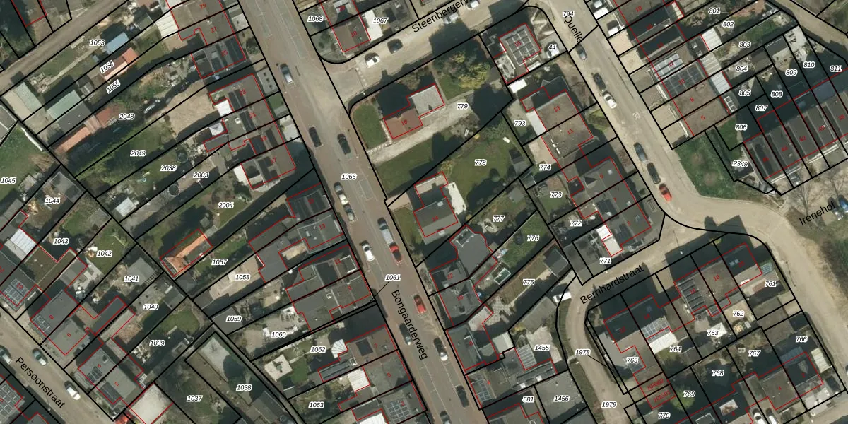 Gebruik de zoekbalk of klik op een perceel voor informatie over de adressen binnen dit perceel.