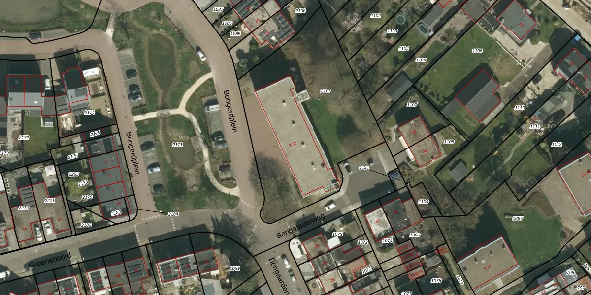 Bongerdplein 14 is gelegen op kadastraal perceel SPV00G2107. Deze kadastrale aanduiding is uniek en wordt gebruikt door het Kadaster om eigendomsrechten en andere zakelijke rechten vast te leggen. Het perceel maakt onderdeel uit van de kadastrale gemeente Simpelveld.