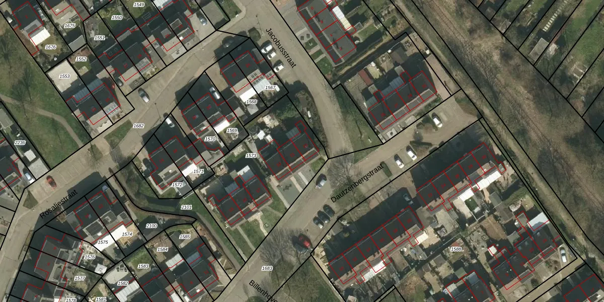 Het perceel waarop Dautzenbergstraat 23 staat heeft een oppervlakte van 1216 m². Dit is een zeer groot perceel. De perceeloppervlakte wordt geregistreerd door het Kadaster. Gedetailleerde informatie over de maten van dit perceel kunt u vinden in het rapport Kadastrale kaart met maatvoering van Dautzenbergstraat 23.