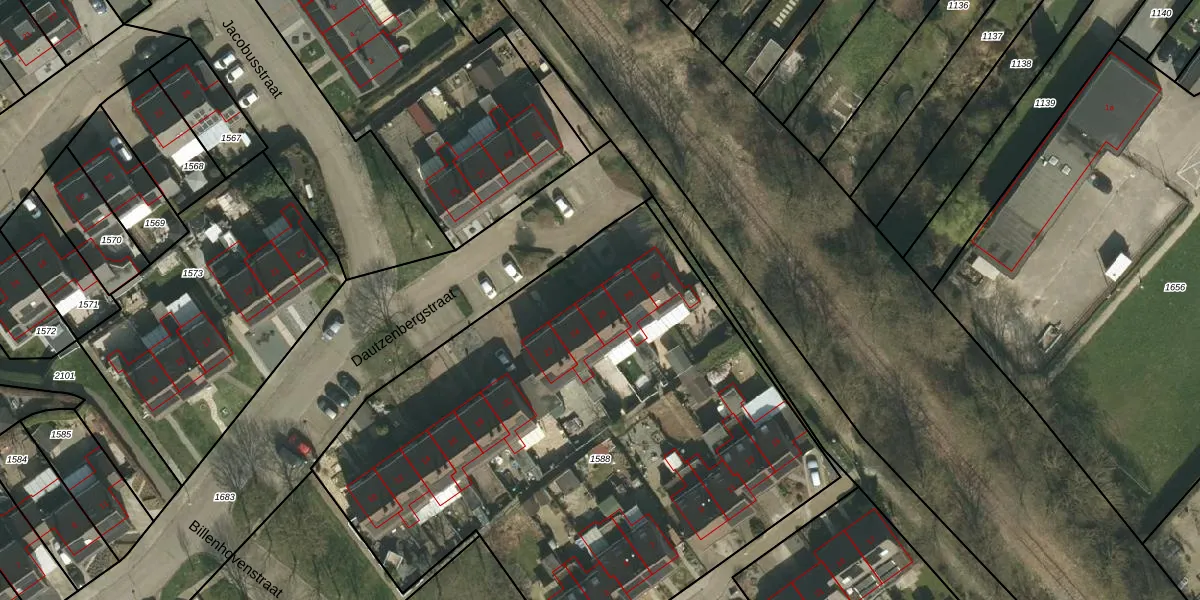 Het perceel waarop Dautzenbergstraat 26 staat heeft een oppervlakte van 3586 m². Dit is een zeer groot perceel. De perceeloppervlakte wordt geregistreerd door het Kadaster. Gedetailleerde informatie over de maten van dit perceel kunt u vinden in het rapport Kadastrale kaart met maatvoering van Dautzenbergstraat 26.