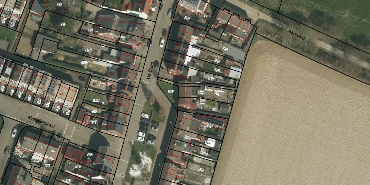 Het perceel waarop De Baan 11 staat heeft een oppervlakte van 210 m². Dit is een middelgroot perceel. De perceeloppervlakte wordt geregistreerd door het Kadaster. Gedetailleerde informatie over de maten van dit perceel kunt u vinden in het rapport Kadastrale kaart met maatvoering van De Baan 11.
