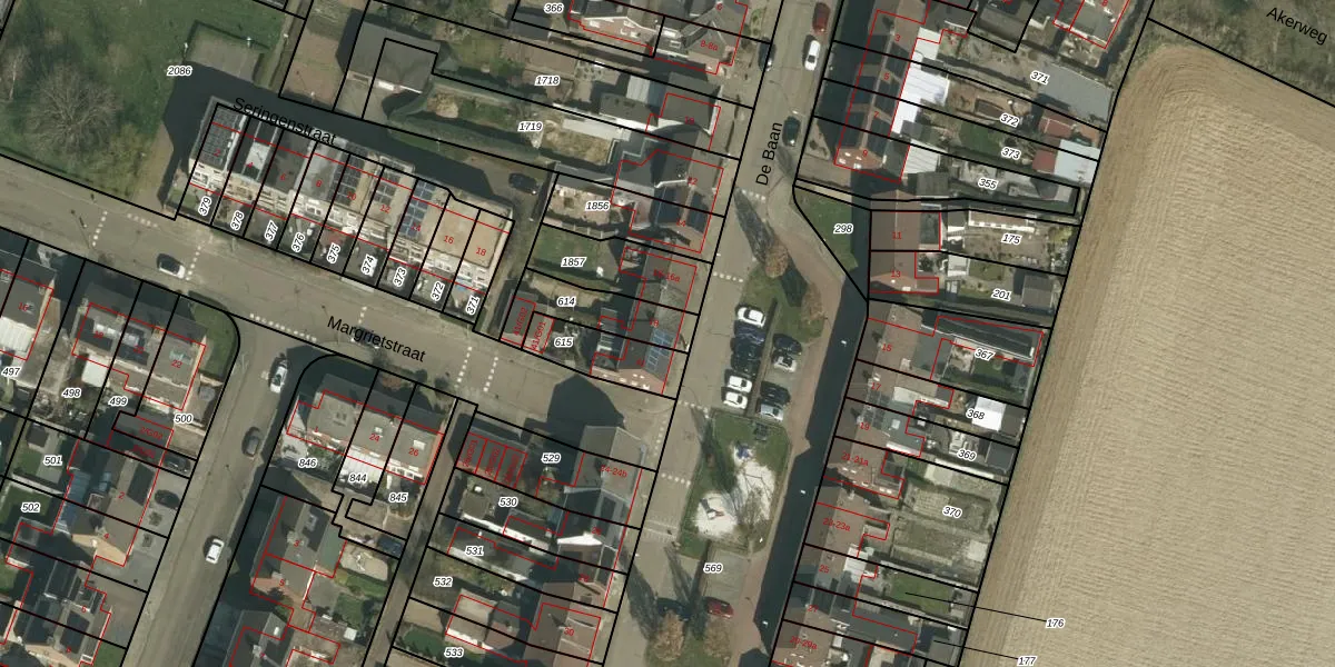 Het perceel waarop De Baan 18 staat heeft een oppervlakte van 180 m². Dit is een middelgroot perceel. De perceeloppervlakte wordt geregistreerd door het Kadaster. Gedetailleerde informatie over de maten van dit perceel kunt u vinden in het rapport Kadastrale kaart met maatvoering van De Baan 18.