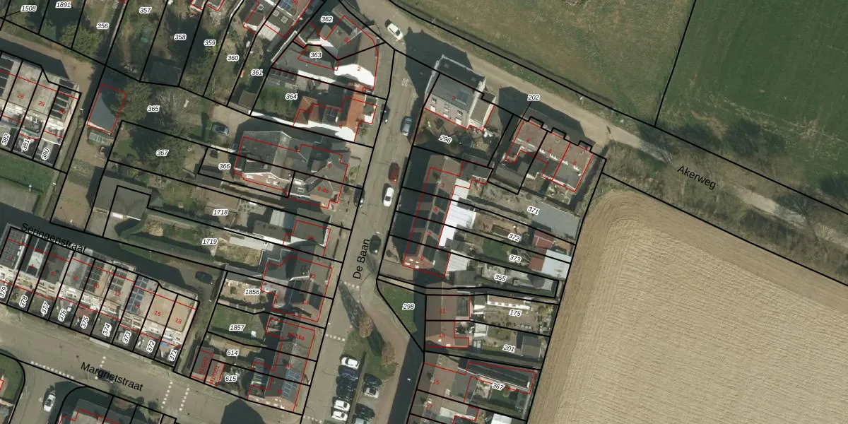 Het perceel waarop De Baan 5 staat heeft een oppervlakte van 250 m². Dit is een middelgroot perceel. De perceeloppervlakte wordt geregistreerd door het Kadaster. Gedetailleerde informatie over de maten van dit perceel kunt u vinden in het rapport Kadastrale kaart met maatvoering van De Baan 5.