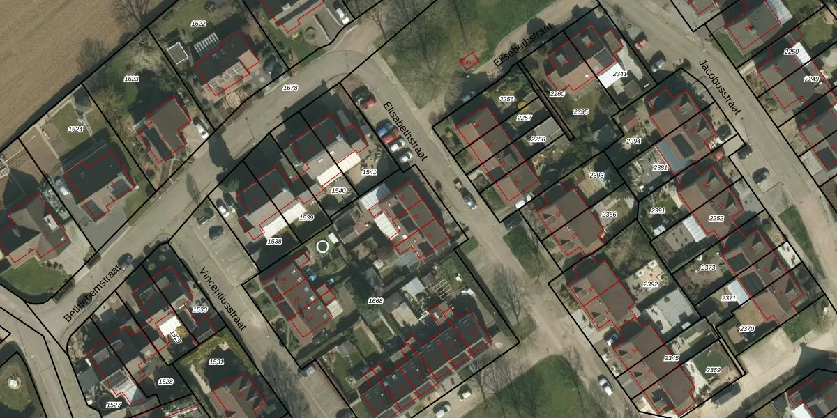 Het perceel waarop Elisabethstraat 15 staat heeft een oppervlakte van 2283 m². Dit is een zeer groot perceel. De perceeloppervlakte wordt geregistreerd door het Kadaster. Gedetailleerde informatie over de maten van dit perceel kunt u vinden in het rapport Kadastrale kaart met maatvoering van Elisabethstraat 15.