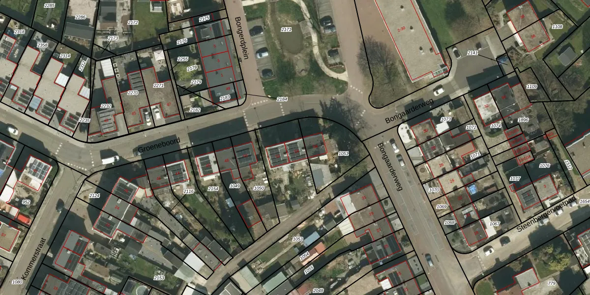 Het perceel waarop Groeneboord 54 staat heeft een oppervlakte van 2432 m². Dit is een zeer groot perceel. De perceeloppervlakte wordt geregistreerd door het Kadaster. Gedetailleerde informatie over de maten van dit perceel kunt u vinden in het rapport Kadastrale kaart met maatvoering van Groeneboord 54.
