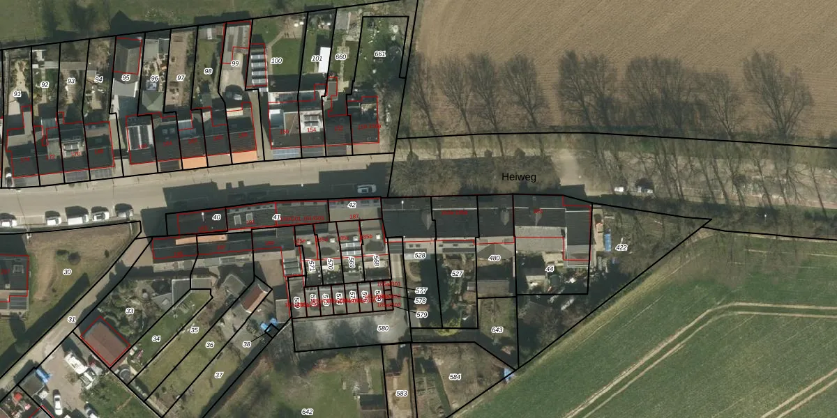 Heiweg 185-a is gelegen op kadastraal perceel SPV00K528. Deze kadastrale aanduiding is uniek en wordt gebruikt door het Kadaster om eigendomsrechten en andere zakelijke rechten vast te leggen. Het perceel maakt onderdeel uit van de kadastrale gemeente Simpelveld.