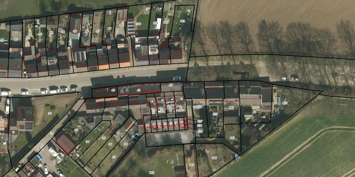 Heiweg 187 is gelegen op kadastraal perceel SPV00K42. Deze kadastrale aanduiding is uniek en wordt gebruikt door het Kadaster om eigendomsrechten en andere zakelijke rechten vast te leggen. Het perceel maakt onderdeel uit van de kadastrale gemeente Simpelveld.