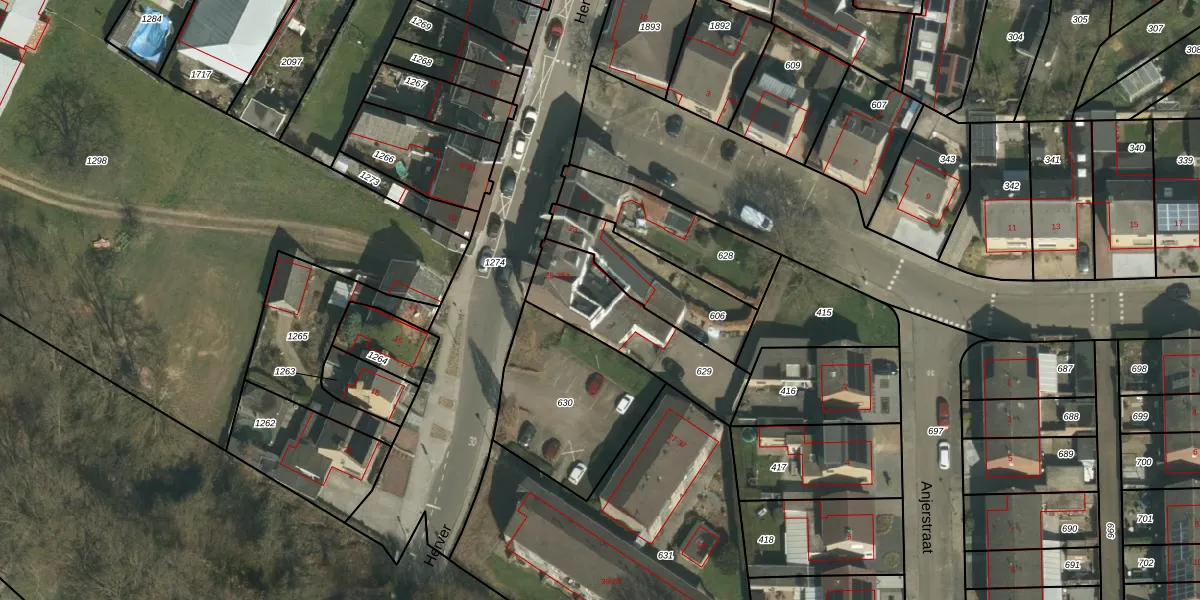 Het perceel waarop Herver 25-a staat heeft een oppervlakte van 390 m². Dit is een groot perceel. De perceeloppervlakte wordt geregistreerd door het Kadaster. Gedetailleerde informatie over de maten van dit perceel kunt u vinden in het rapport Kadastrale kaart met maatvoering van Herver 25-a.