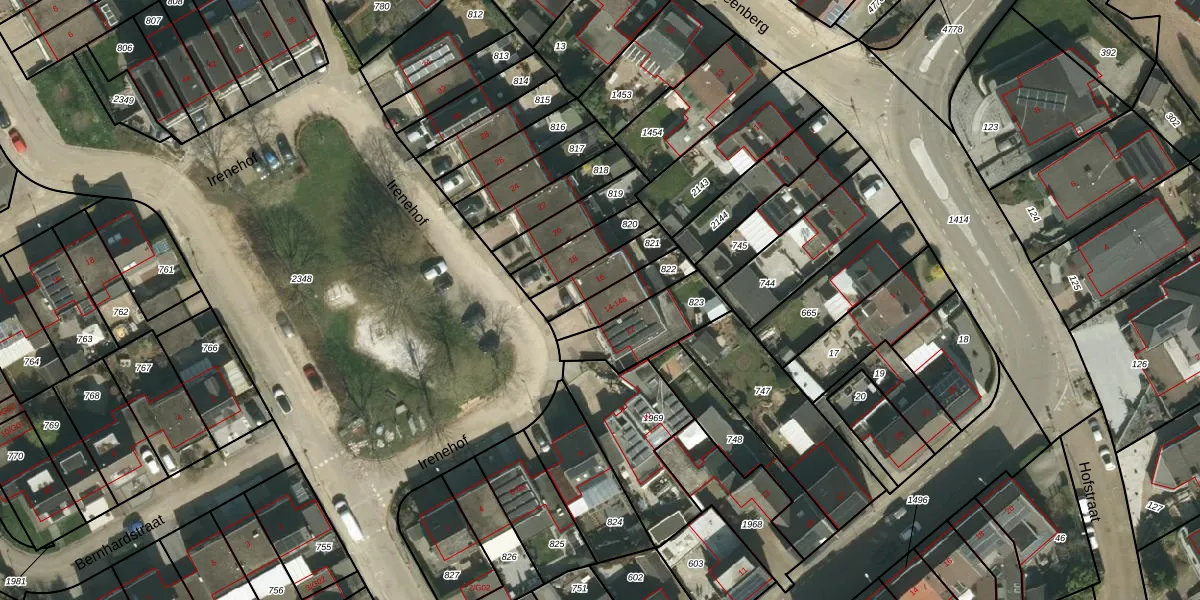 Irenehof 14 is gelegen op kadastraal perceel SPV00G822. Deze kadastrale aanduiding is uniek en wordt gebruikt door het Kadaster om eigendomsrechten en andere zakelijke rechten vast te leggen. Het perceel maakt onderdeel uit van de kadastrale gemeente Simpelveld.