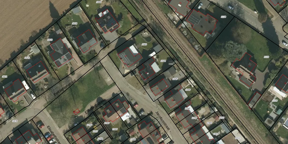 Het perceel waarop Jacobusstraat 42 staat heeft een oppervlakte van 360 m². Dit is een groot perceel. De perceeloppervlakte wordt geregistreerd door het Kadaster. Gedetailleerde informatie over de maten van dit perceel kunt u vinden in het rapport Kadastrale kaart met maatvoering van Jacobusstraat 42.