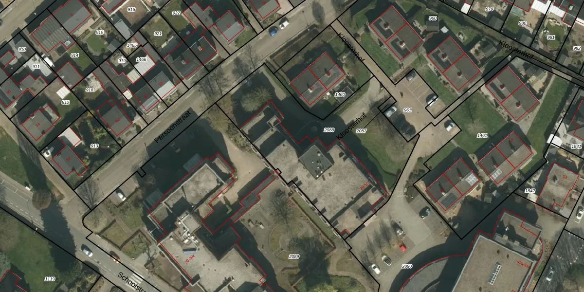 Het perceel waarop Kloosterhof 101 staat heeft een oppervlakte van 1995 m². Dit is een zeer groot perceel. De perceeloppervlakte wordt geregistreerd door het Kadaster. Gedetailleerde informatie over de maten van dit perceel kunt u vinden in het rapport Kadastrale kaart met maatvoering van Kloosterhof 101.