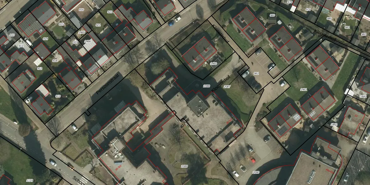 Het perceel waarop Kloosterhof 103 staat heeft een oppervlakte van 1995 m². Dit is een zeer groot perceel. De perceeloppervlakte wordt geregistreerd door het Kadaster. Gedetailleerde informatie over de maten van dit perceel kunt u vinden in het rapport Kadastrale kaart met maatvoering van Kloosterhof 103.