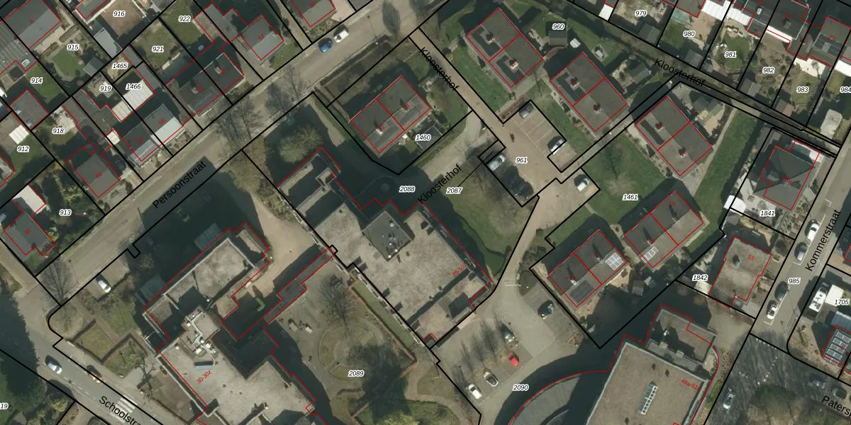 Het perceel waarop Kloosterhof 105 staat heeft een oppervlakte van 1995 m². Dit is een zeer groot perceel. De perceeloppervlakte wordt geregistreerd door het Kadaster. Gedetailleerde informatie over de maten van dit perceel kunt u vinden in het rapport Kadastrale kaart met maatvoering van Kloosterhof 105.