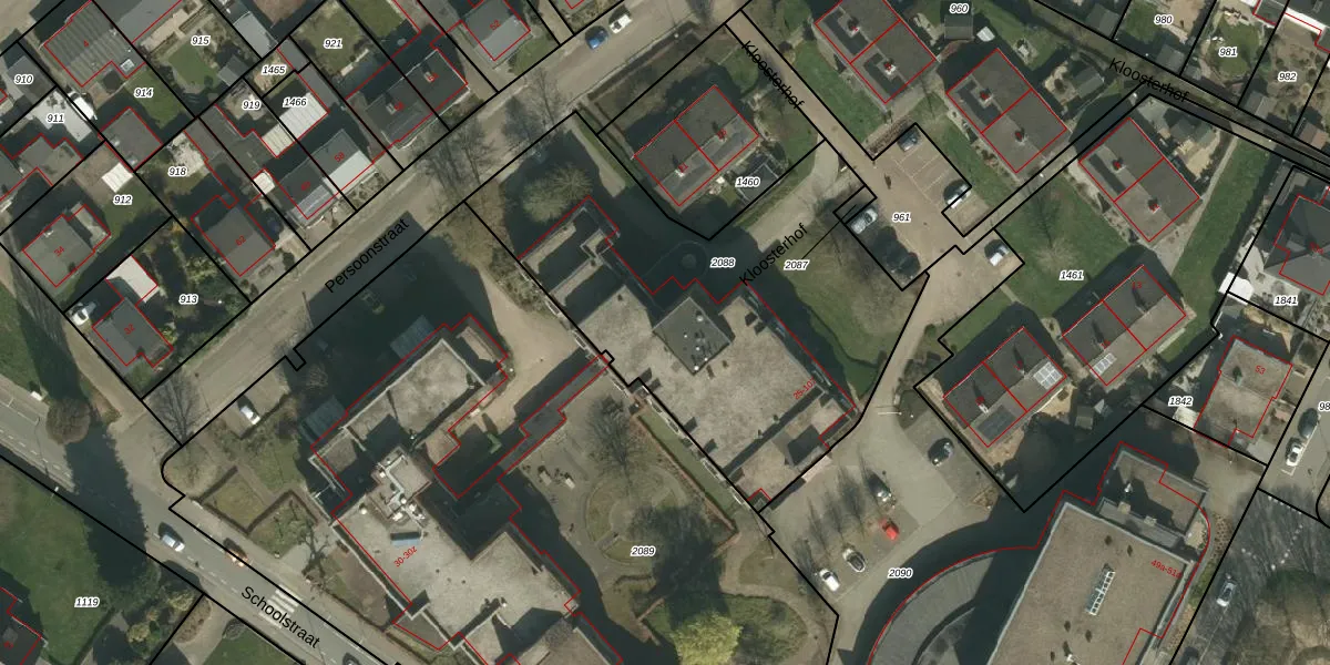 Het perceel waarop Kloosterhof 75 staat heeft een oppervlakte van 1995 m². Dit is een zeer groot perceel. De perceeloppervlakte wordt geregistreerd door het Kadaster. Gedetailleerde informatie over de maten van dit perceel kunt u vinden in het rapport Kadastrale kaart met maatvoering van Kloosterhof 75.