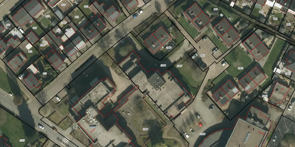 Het perceel waarop Kloosterhof 79 staat heeft een oppervlakte van 1995 m². Dit is een zeer groot perceel. De perceeloppervlakte wordt geregistreerd door het Kadaster. Gedetailleerde informatie over de maten van dit perceel kunt u vinden in het rapport Kadastrale kaart met maatvoering van Kloosterhof 79.
