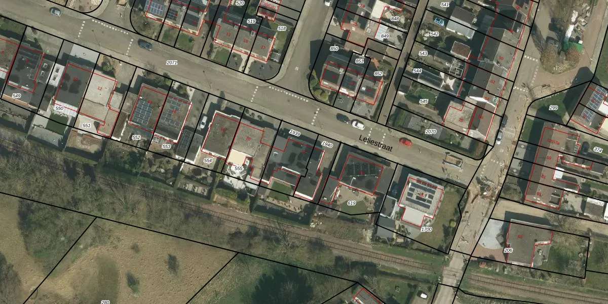 Gebruik de zoekbalk of klik op een perceel voor informatie over de adressen binnen dit perceel.
