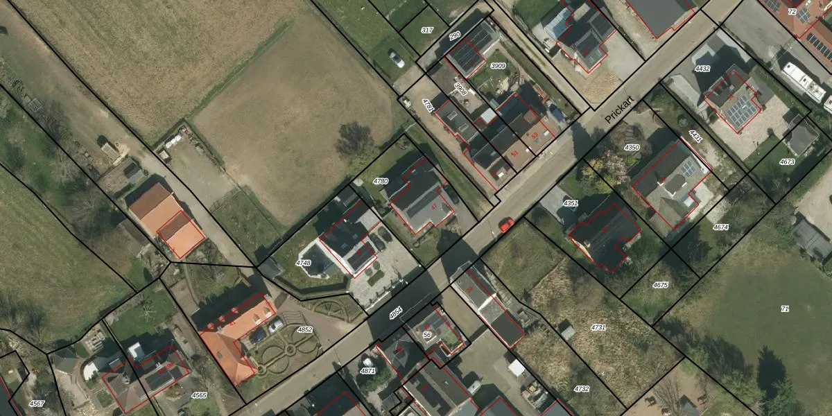 Het perceel waarop Prickart 47 staat heeft een oppervlakte van 495 m². Dit is een groot perceel. De perceeloppervlakte wordt geregistreerd door het Kadaster. Gedetailleerde informatie over de maten van dit perceel kunt u vinden in het rapport Kadastrale kaart met maatvoering van Prickart 47.