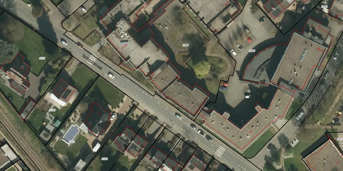 Het perceel waarop Schoolstraat 30-k-103 staat heeft een oppervlakte van 4915 m². Dit is een zeer groot perceel. De perceeloppervlakte wordt geregistreerd door het Kadaster. Gedetailleerde informatie over de maten van dit perceel kunt u vinden in het rapport Kadastrale kaart met maatvoering van Schoolstraat 30-k-103.