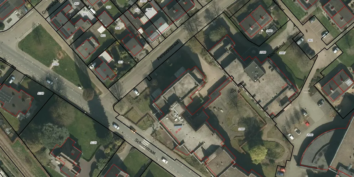 Het perceel waarop Schoolstraat 30-k-120 staat heeft een oppervlakte van 4915 m². Dit is een zeer groot perceel. De perceeloppervlakte wordt geregistreerd door het Kadaster. Gedetailleerde informatie over de maten van dit perceel kunt u vinden in het rapport Kadastrale kaart met maatvoering van Schoolstraat 30-k-120.