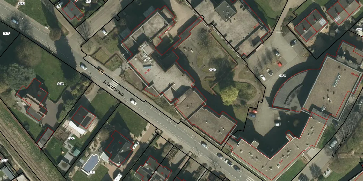 Het perceel waarop Schoolstraat 30-l staat heeft een oppervlakte van 4915 m². Dit is een zeer groot perceel. De perceeloppervlakte wordt geregistreerd door het Kadaster. Gedetailleerde informatie over de maten van dit perceel kunt u vinden in het rapport Kadastrale kaart met maatvoering van Schoolstraat 30-l.