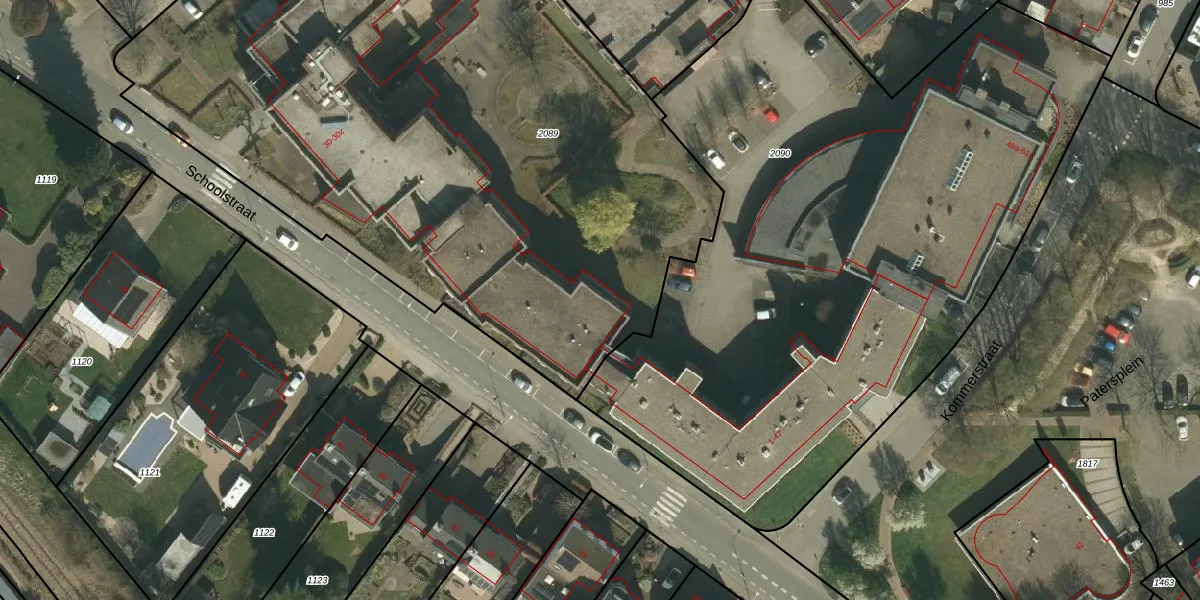 Het perceel waarop Schoolstraat 30-t staat heeft een oppervlakte van 4915 m². Dit is een zeer groot perceel. De perceeloppervlakte wordt geregistreerd door het Kadaster. Gedetailleerde informatie over de maten van dit perceel kunt u vinden in het rapport Kadastrale kaart met maatvoering van Schoolstraat 30-t.