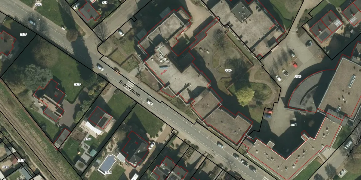 Het perceel waarop Schoolstraat 30-w staat heeft een oppervlakte van 4915 m². Dit is een zeer groot perceel. De perceeloppervlakte wordt geregistreerd door het Kadaster. Gedetailleerde informatie over de maten van dit perceel kunt u vinden in het rapport Kadastrale kaart met maatvoering van Schoolstraat 30-w.
