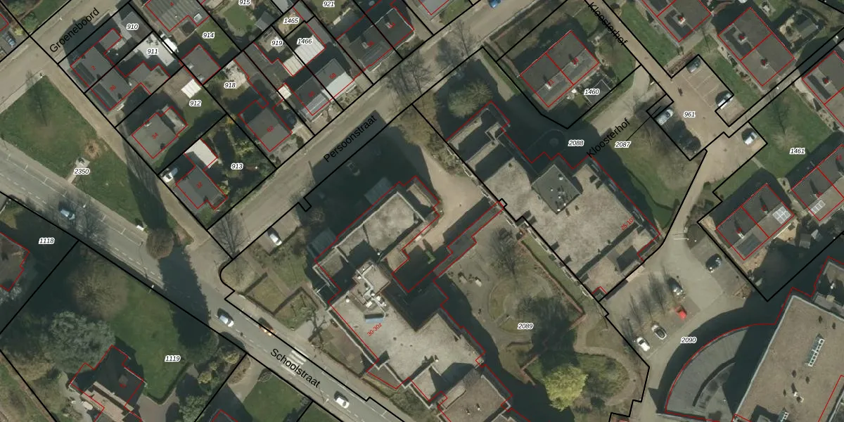 Het perceel waarop Schoolstraat 30-z staat heeft een oppervlakte van 4915 m². Dit is een zeer groot perceel. De perceeloppervlakte wordt geregistreerd door het Kadaster. Gedetailleerde informatie over de maten van dit perceel kunt u vinden in het rapport Kadastrale kaart met maatvoering van Schoolstraat 30-z.